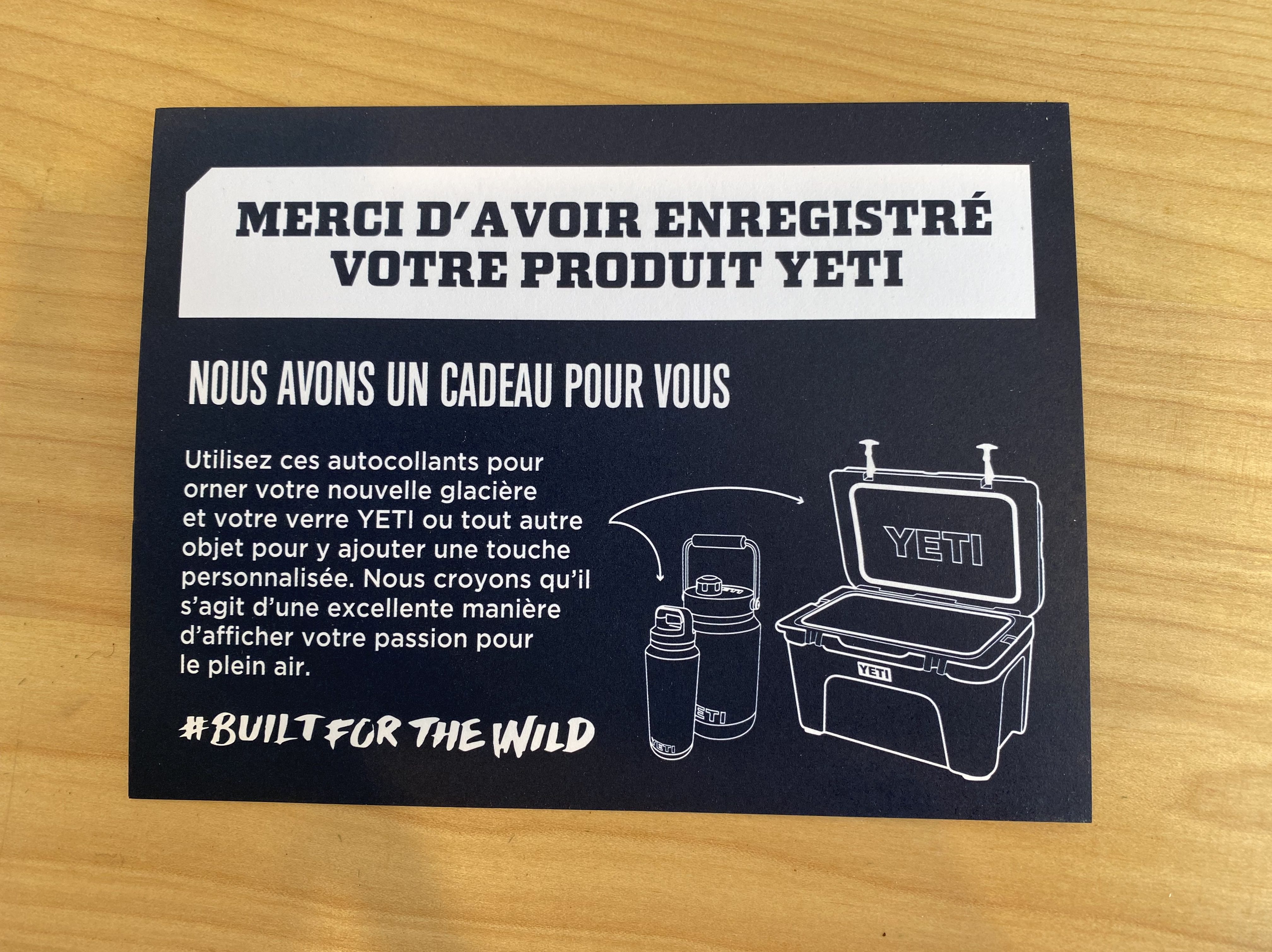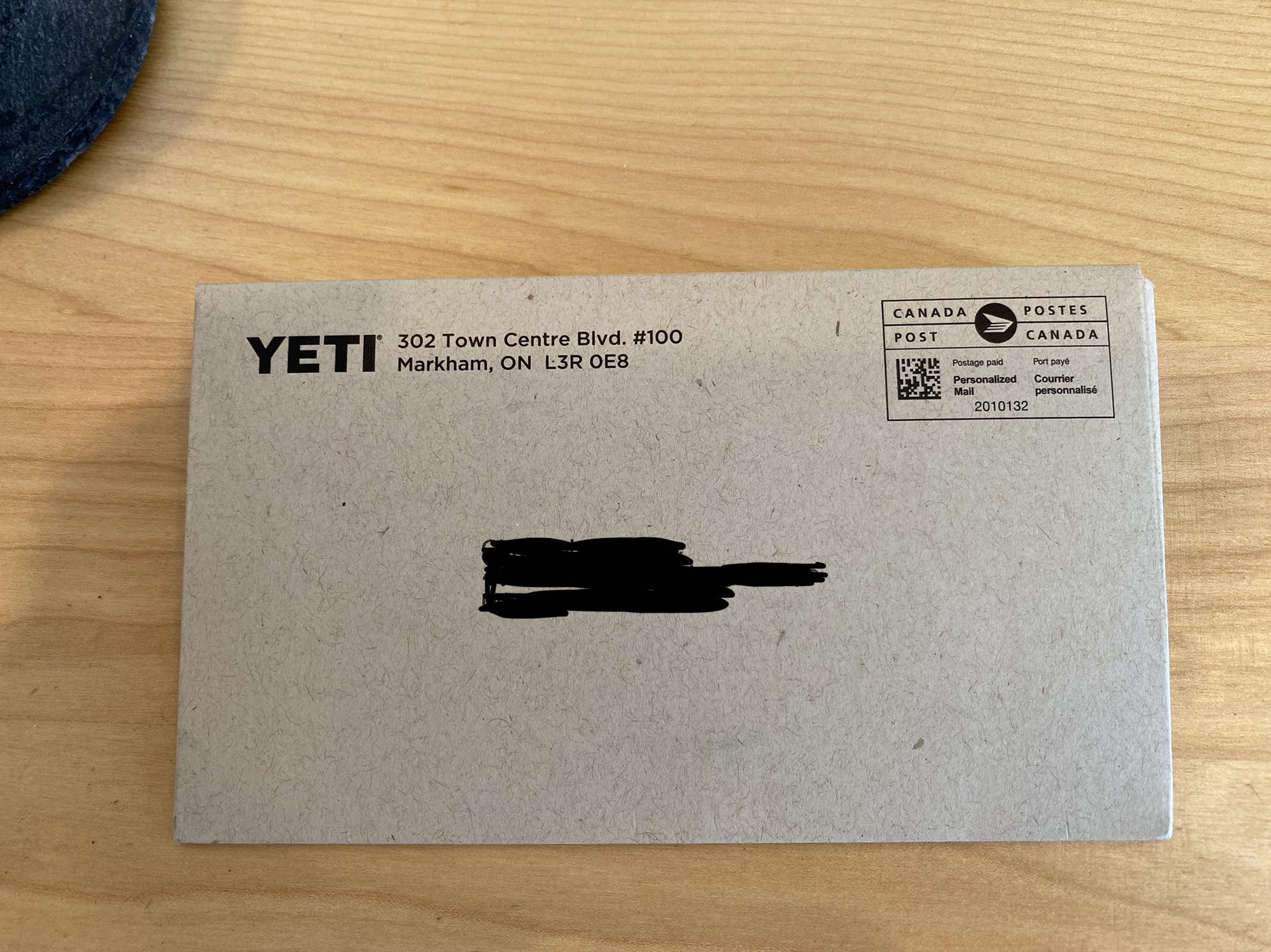 But weirdly, a few weeks later, I received another envelop from Yeti (same look as the previous one). But this time, here’s what was in it: